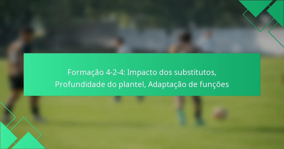 A formação 4-2-4 é uma configuração tática no futebol caracterizada por quatro defensores, dois médios-centrais e quatro avançados. Esta formação enfatiza o jogo ofensivo enquanto mantém uma estrutura defensiva sólida, tornando-se uma escolha popular para equipas que pretendem dominar a posse de bola e criar oportunidades de golo.